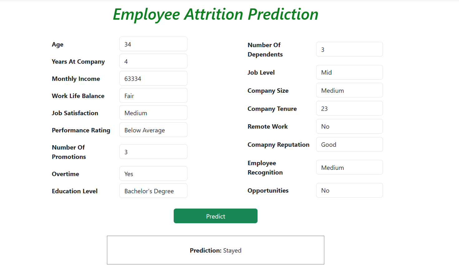 /predictvia a POST request. - Backend receives JSON, converts it to a Pandas DataFrame.