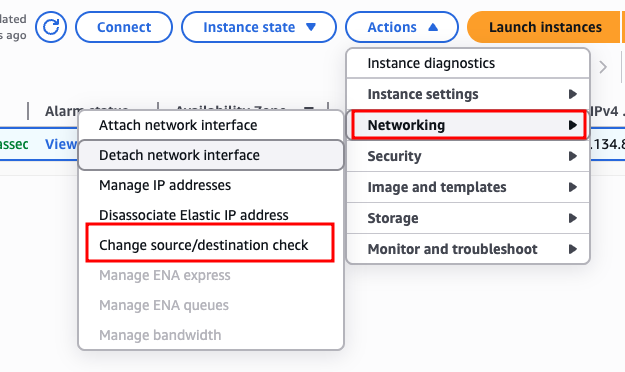 Then, go to Networking and choose Change source/destination check