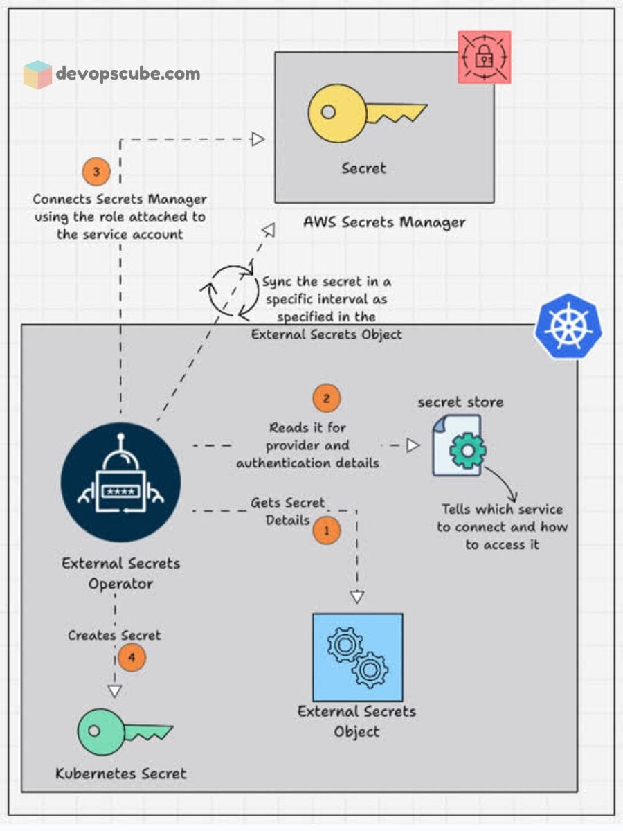 - Automatic synchronization: Automatically syncs secrets between external systems and Kubernetes.
